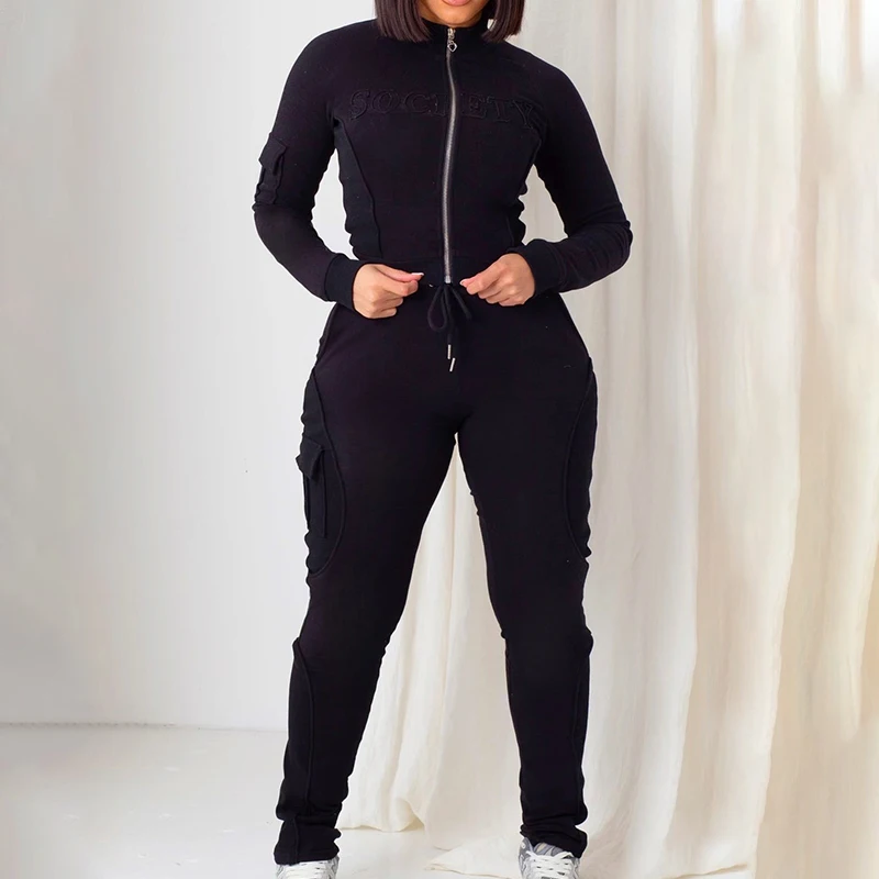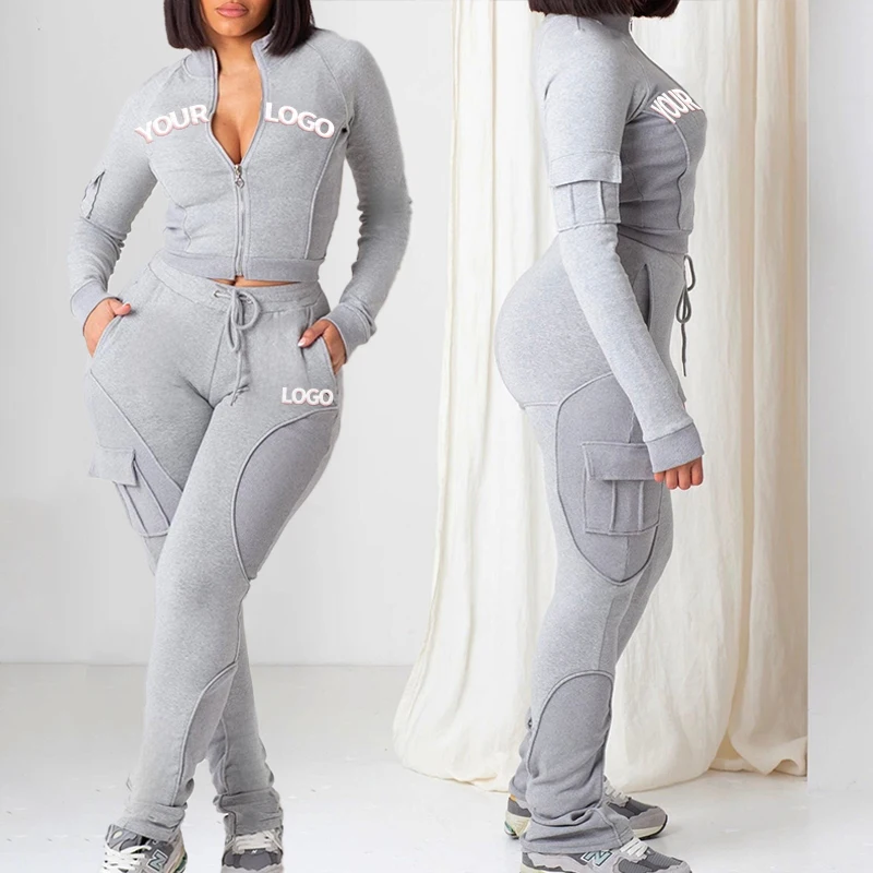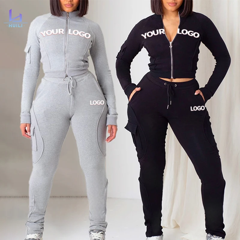 Huili Custom Logo High Quality Tracksuit Slim Fit Skinny Tracksuit Top Two Piece Bodysuit Women Joggers and Hoodie Sets